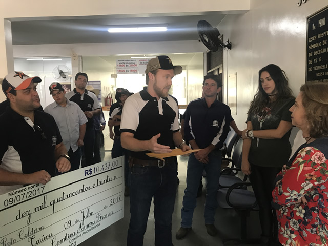 A Comitiva Amora Branca, de Taiúva, doou ao Hospital Municipal Júlia Pinto Caldeira, R$ 10.437,00 – parte da renda obtida com a “1ª Cavalgada” realizada em 9 de julho. A entrega ocorreu na tarde de sábado (22/07), nas dependências do Hospital. Falando em nome do grupo, Augusto Mambelli Neto, disse que a ideia é promover o evento anualmente, revertendo parte do ganho ao Hospital que atende cerca de 95% da população de Taiúva.