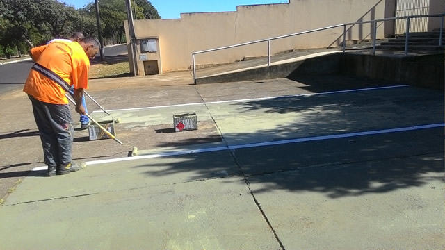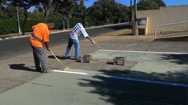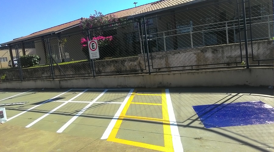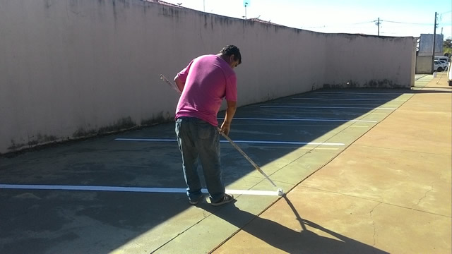 Os trabalhos consistem na identificação de vagas de estacionamento, inclusive vagas especiais para deficientes e idosos. O objetivo é garantir a segurança e organização para os frequentadores do local.