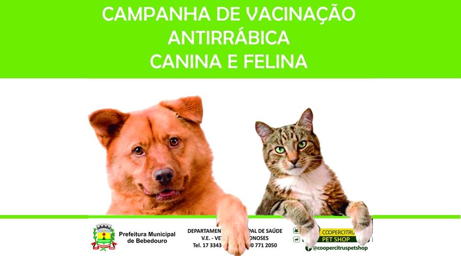A Prefeitura de Bebedouro, por meio Vigilância Epidemiológica -  Vetores e Zoonoses, inicia em 5 de agosto, a Campanha de Vacinação Antirrábica, imunizando animais contra a doença que pode matar e ser transmitida aos humanos.