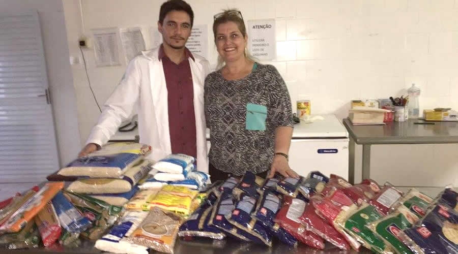 Na foto, representando o grupo "Amigos do Chico" a voluntária Gláucia Crespo com o nutricionista responsável do hospital municipal, Bruno Dias.
