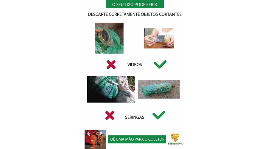 A orientação básica é para que todo material cortante ou perfurante seja bem envolvido em folhas de jornal, papelão ou mesmo garrafas pet e caixas de leite, antes de ser colocado nos sacos de lixo.