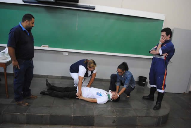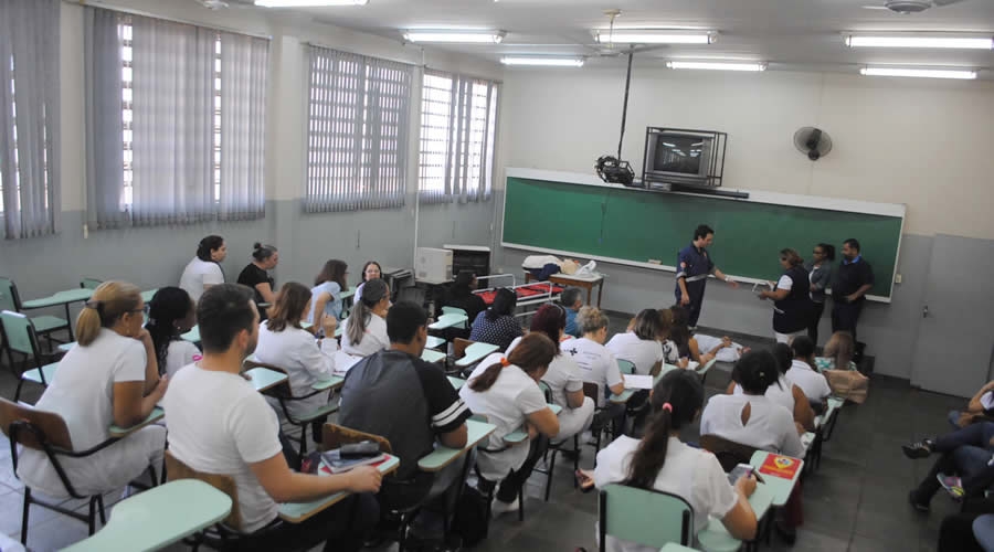 Para garantir ainda melhor atendimento à população e em especial aos atletas da Terceira Idade que estarão competindo dos dias 20 a 24 de setembro, na 21ª Edição dos JORI (Jogos Regionais do Idoso), enfermeiros e técnicos de enfermagem do Departamento Municipal de Saúde (DMS), participaram de um treinamento para aprimorarem as técnicas de primeiro atendimento. O aprimoramento foi realizado nesta terça-feira, (19/09) por médicos do AME (Ambulatório Médico de Especialidades) e SAMU (Serviço de Atendimento Móvel de Urgência) de Barretos, no IMESB (Instituto Municipal de Ensino Superior de Bebedouro- Victório Cardassi).