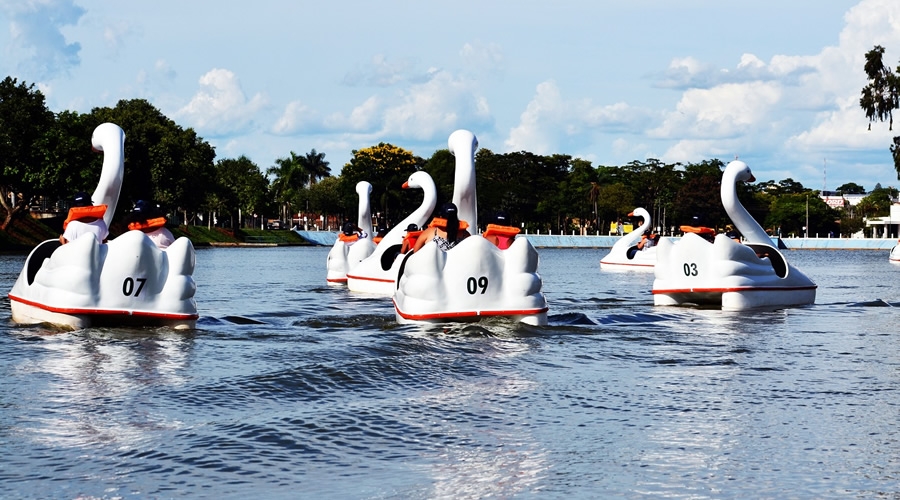 Pedalinhos estão todos os domingos em funcionamento no Lago Artificial