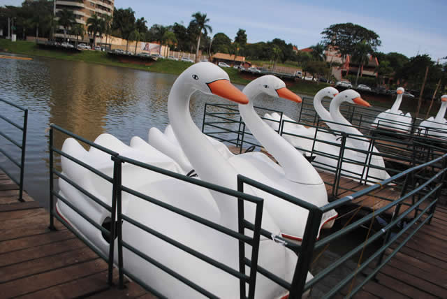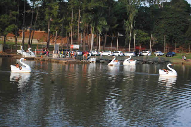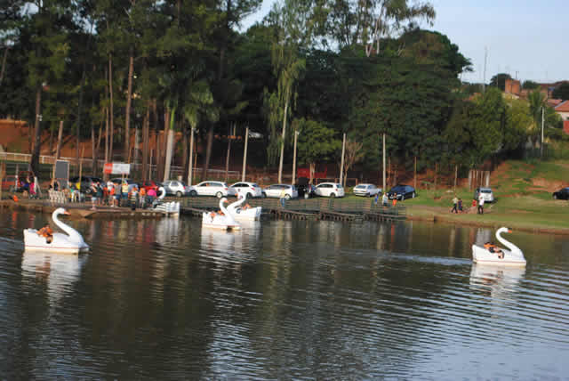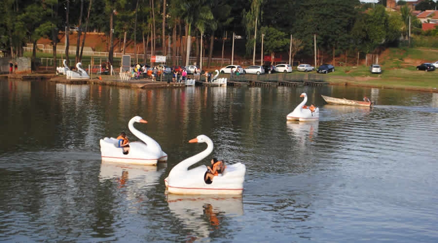 Todos os domingos acontecem os passeios de pedalinho no Lago Artificial