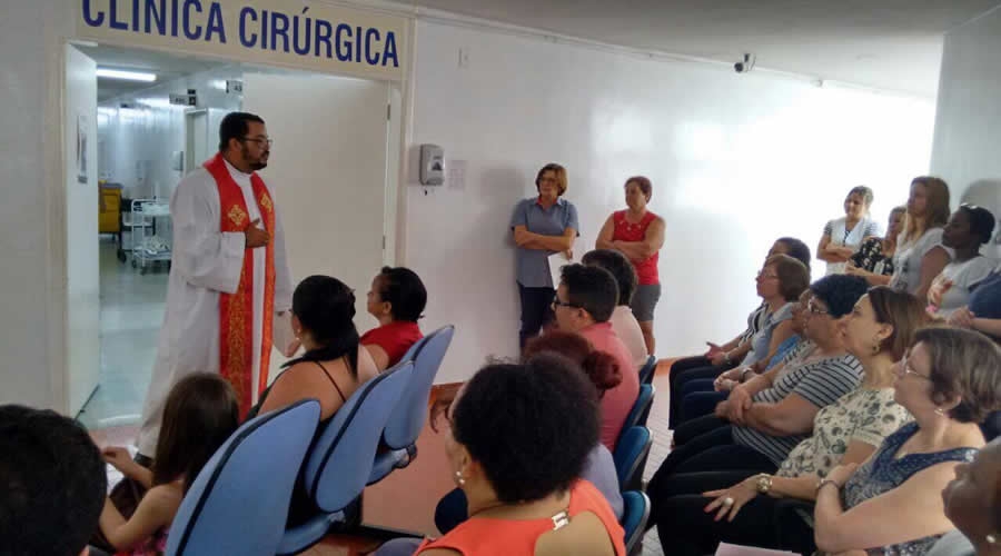 Durante a manhã desta quarta-feira (18/10), os funcionários do Hospital Municipal Julia Pinto Caldeira, participaram de uma missa em comemoração ao Dia do Médico. A cerimônia religiosa foi celebrada pelo padre Tibério, da paróquia Santo Ignácio de Loiola, e realizada no Hospital Municipal.