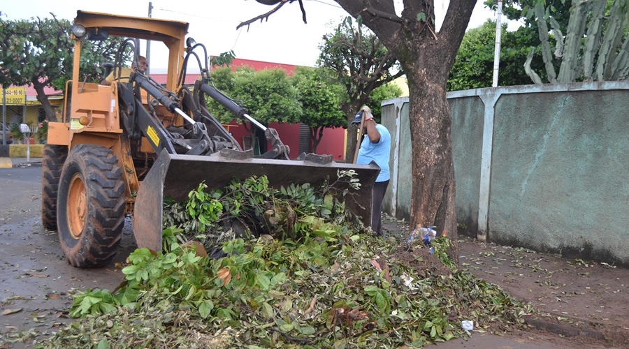 A Garagem Municipal realiza a retirada de entulhos e roçada de grama nas ruas do setor leste da cidade durante esta semana.