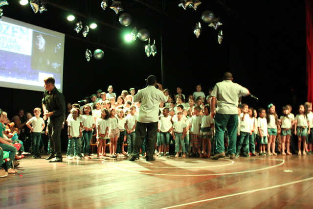 A magia dos clássicos infantis tomou conta do Teatro Municipal na noite de quarta-feira (08/11), para a apresentação dos Pequenos Músicos em “Deu a Louca nos Musicais Infantis”, que levou ao palco 170 crianças das escolas municipais, que regidos pelo professor Edmar Batista com o apoio dos professores Rafael Donizete e Josué Santos cantaram temas de “A Bela e a Fera”, “Frozen – uma aventura congelante” e o “Rei Leão”.