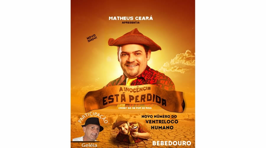 O humorista Matheus Ceará volta a se apresentar no Teatro Municipal de Bebedouro, dia 25 de novembro, sábado, às 20h, desta vez com o espetáculo “A Inocência está Perdida”.