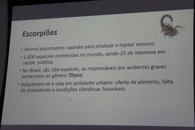 No conteúdo apresentado, foram expostos vídeos e dados nacionais, além de cuidados que devem ser tomados. Dentre eles, a limpeza de quintais e terrenos, como também a limpeza realizada com querosene – que funciona como repelente para o animal. “Muitas pessoas acreditam que o veneno é a melhor forma de lidar com o problema, mas a verdade é que o veneno é mais prejudicial para quem o utiliza, o escorpião raramente morre com a aplicação, apenas se desloca de local”, afirma.