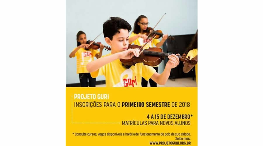 O Projeto Guri mantido pela Secretaria da Cultura do Estado de São Paulo em parceria com a Prefeitura de Bebedouro está com inscrições abertas para novos alunos para o primeiro semestre de 2018. As aulas de iniciação musical oferecidas no contraturno escolar são para os instrumentos: Clarinete, Contrabaixo acústico, Eufônio/Bombardino, Flauta transversal, Percussão, Saxofone, Trombone, Trompete, Viola, Violino e Violoncelo.