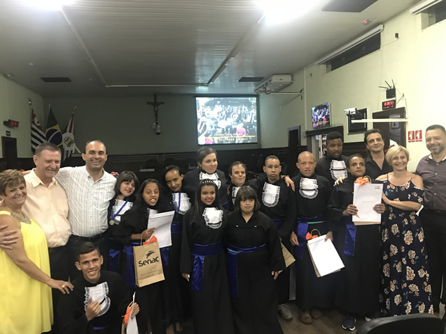 O SENAC realizou na noite de sexta-feira (15/12), na Câmara Municipal a formatura dos estudantes de educação especial do Programa Educação para o Trabalho – Trampolim, PET Trampolim, que visa contribuir para a inclusão de pessoas com deficiência intelectual e em sinal de vulnerabilidade social ao mercado de trabalho.