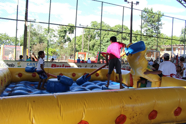 Os participantes tiveram acesso a brinquedos como futebol de sabão, pula pulas e escorregadores, além de pintura facial, palhaços e muita música, pipoca, sorvete e algodão doce.