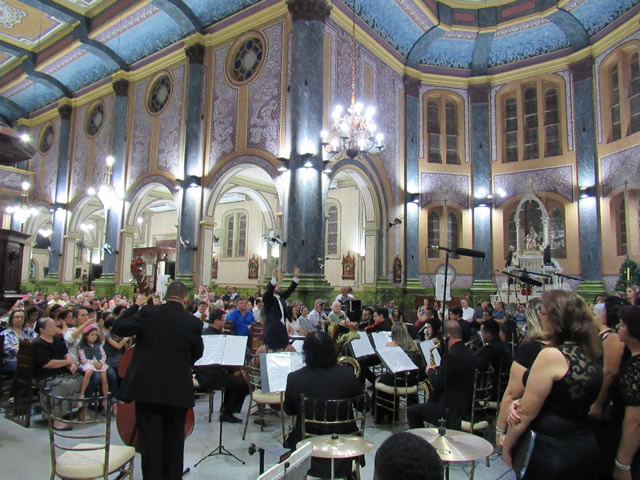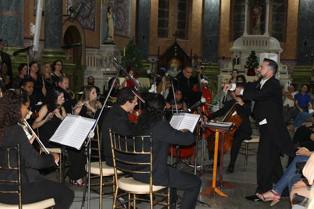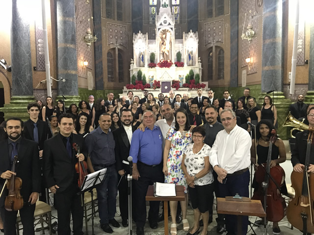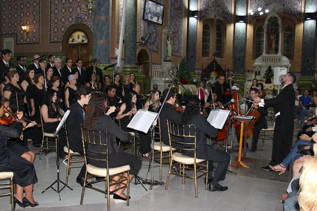 O público se emocionou com o Concerto de Natal realizado na matriz de São João Batista, na noite de sábado (23/12), sob a regência do maestro Glauco Corrêa, que reuniu os corais Maestro Pedro Pellegrino, Ritornello e Schola Cantorum de Bebedouro e a Orquestra Sinfônica de Bebedouro – em sua primeira apresentação com plateia.