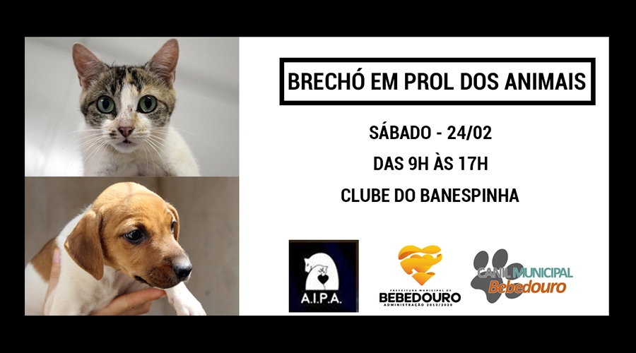 Acontece neste sábado (24/02), das 9h às 17h, no Clube Banespinha, o “Mega Brechó do Animal”.