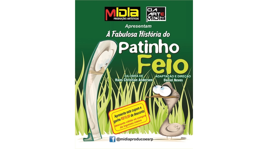 Mídia Produções Artísticas e Cia. Arte Mídia apresentam a peça “Patinho Feio”, em sessão às 20h, na quarta-feira, 14 de março, no Teatro Municipal de Bebedouro.