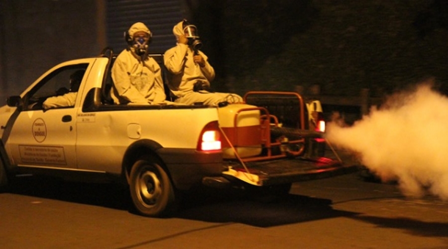 A Vigilância Epidemiológica Vetores e Zoonoses realiza a pulverização de inseticida, “fumacê” nos bairros da cidade, para a eliminação de pernilongos.