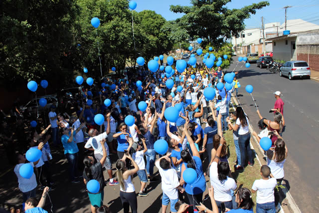 A Caminhada percorreu as redondezas das instalações da APAE, na região Sul da cidade e ao final, foram soltos ao ar, balões azuis como símbolo da causa.