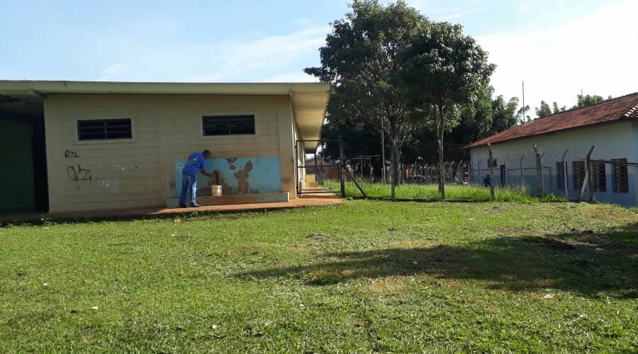 Os trabalhos realizados envolvem poda de grama e árvores, retirada de entulhos e nova pintura predial.