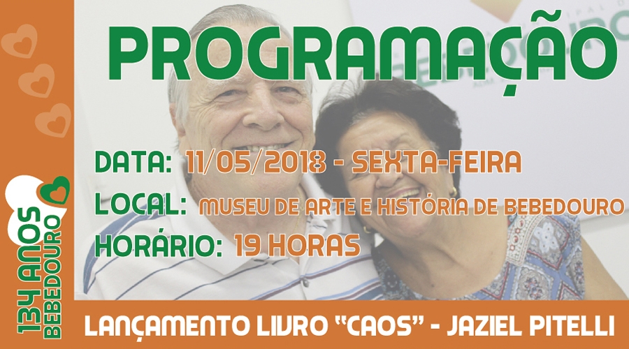 “Caos” é o quarto livro a ser lançado pelo bebedourense Jaziel Pittelli. O evento acontece às 19h, de sexta-feira, 11 de maio, no Museu de Arte e História de Bebedouro, dentro da programação de aniversário do município.