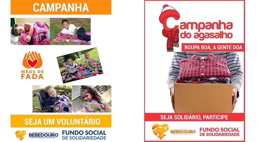 A Prefeitura de Bebedouro, por meio do Fundo Social de Solidariedade (FSS), realiza as campanhas Mãos de Fada e Campanha do Agasalho 2018, com o tema “Roupa Boa, a gente doa”.