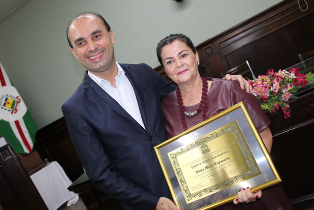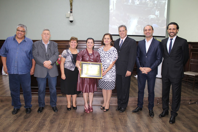 A sócia-proprietária da Padaria Florença, Vilma Maria Capanema recebeu na noite de sexta-feira (20/07), na Câmara Municipal, o Título de Cidadão Bebedourense, de autoria da vereadora Mariângela Mussolini. Familiares e amigos acompanharam a cerimônia.