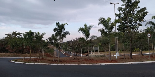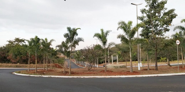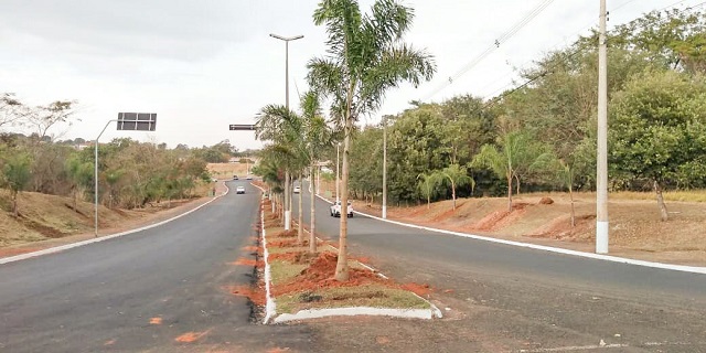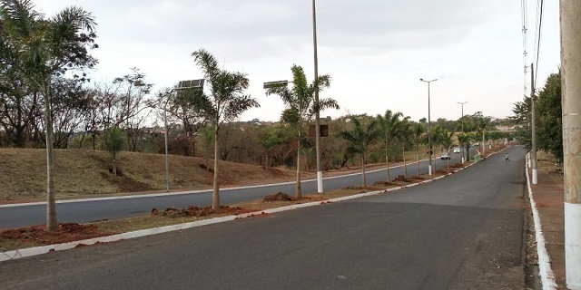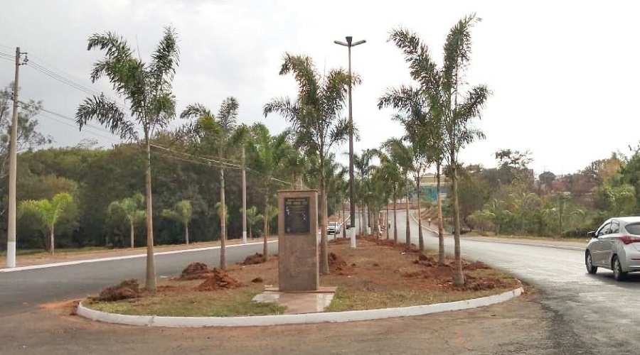 As rotatórias, o canteiro central e as laterais receberam paisagismo com o plantio de palmeiras, dando um novo e bonito visual ao local, que recentemente ganhou nova pavimentação asfáltica.