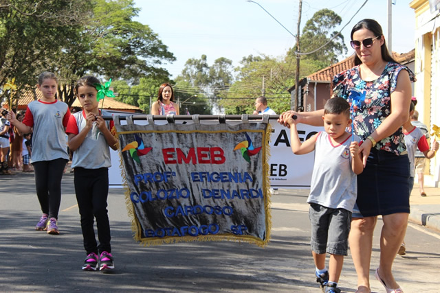 Cerca de 145 estudantes, das fanfarras da EMEB João Pereira Pinho – Jd. Tropical - e Profª Efigênia Colózio Denardi Cardoso – Botafogo – e equipes de evolução se exibiram ao público. Ao final houve o “Parabéns a você” e o corte de bolo.