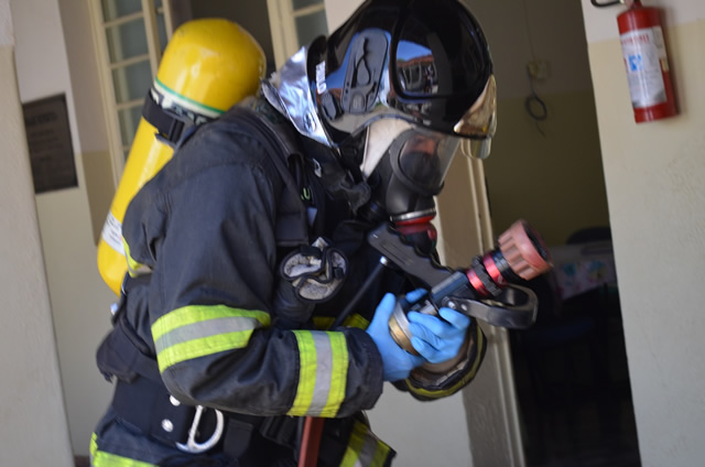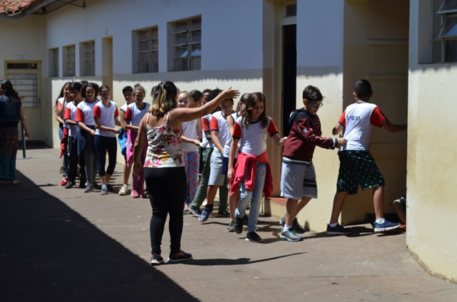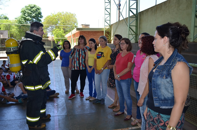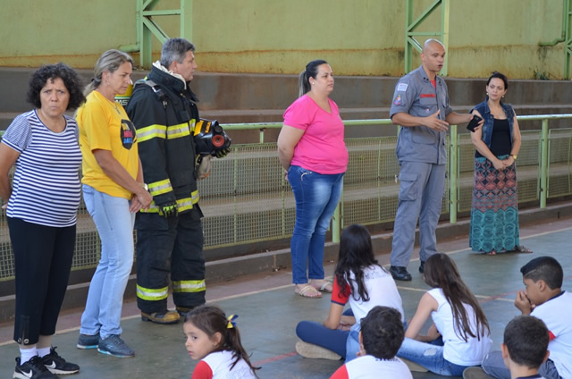 A EMEB Professor Stélio Machado Loureiro realizou uma simulação de incêndio. O treinamento foi realizado na escola, na segunda-feira (22/10), nos períodos da manhã e tarde.