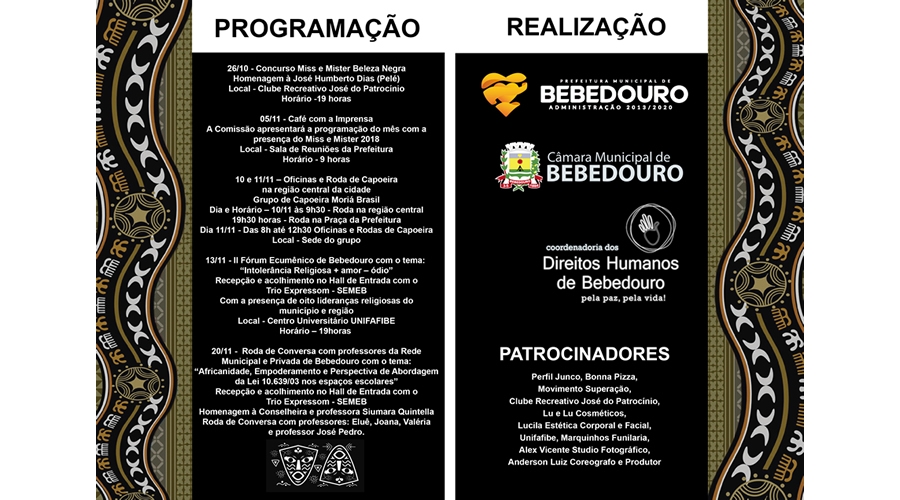 A Prefeitura de Bebedouro, por meio da Coordenadoria de Direitos Humanos, apresentou a programação das atividades do mês da Consciência Negra 2018. O anúncio foi realizado na segunda-feira (05/11), na Prefeitura de Bebedouro.