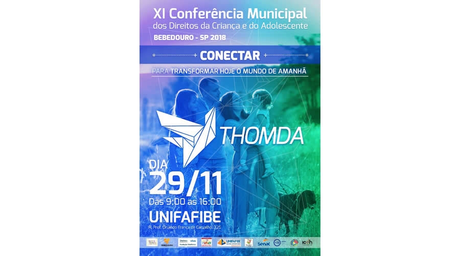 A Prefeitura de Bebedouro, por meio da Rede Criança e Adolescente de Bebedouro, em parceria com o CMDCA (Conselho Municipal dos Direitos das Crianças e Adolescentes) e ICDH (Instituto de Compromisso Com o Desenvolvimento Humano), realizarão a 11ª Conferência Municipal dos Direitos da Criança e do Adolescente em Bebedouro sob o tema ‘Conectar, Inspirar e Empoderar, para transformar hoje o mundo de amanhã’. O evento será realizado nesta quinta-feira (29/11) no UNIFAFIBE, das 9h às 16h.