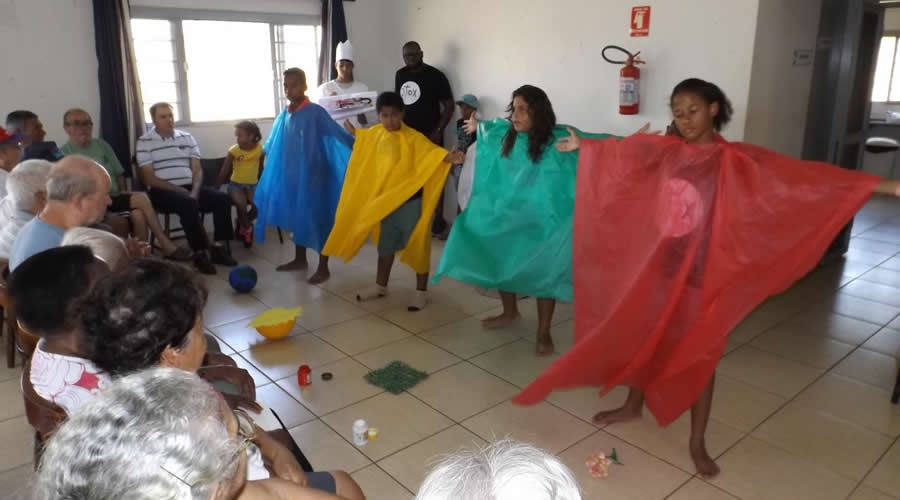 O grupo apresentou duas peças teatrais lúdicas e incentivou os idosos a realizarem exercícios dinâmicos. As acrianças também trocaram experiências com os idosos durante um momento de confraternização. “Independente da religião de cada um, é importante abordar questões que estejam ligadas a partilha, carinho e amor”, comenta a coordenadora do CDI, Cleliane Ravagnani.