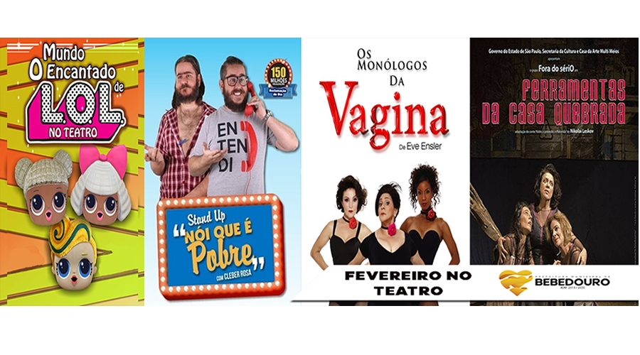 O Departamento Municipal de Cultura de Bebedouro informa que os primeiros eventos confirmados no Teatro Municipal este ano, tem início no sábado (09/02), e os ingressos já estão sendo vendidos pelo site www.megabilhteria.com e bilheteria do teatro.