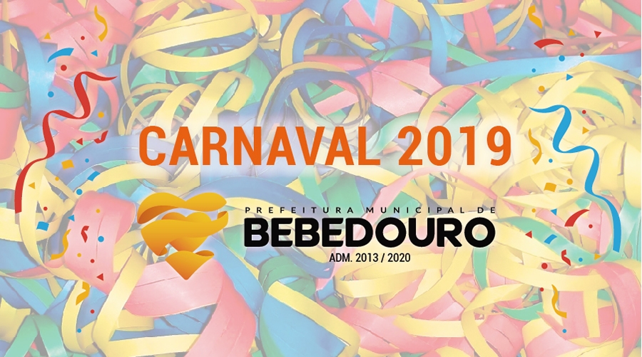 A Prefeitura de Bebedouro, por meio do Departamento Municipal de Cultura, informa que começa nesta sexta-feira (01/03), a partir das 19h a programação do Carnaval 2019. A festa será realizada com muita música e animação de qualidade na região do Lago Artificial de Bebedouro e no Centro Social Urbano do Jardim Alvorada. As atrações serão realizadas até a segunda-feira (04/03).