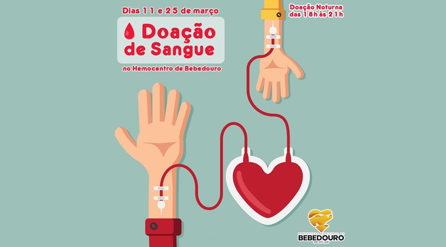 Na segunda-feira, a unidade do Hemocentro de Bebedouro, anexa ao Hospital Municipal Júlia Pinto Caldeira, realizará a coleta de sangue noturna das 18h às 21h. As duas coletas noturnas do mês serão nas segundas-feiras, dia 11 e 25 de março.