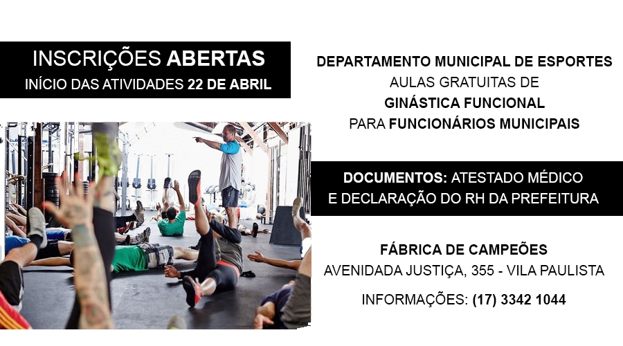 O Departamento Municipal de Esportes (DME) está com as inscrições abertas para as aulas gratuitas de ginástica funcional, destinadas exclusivamente para os funcionários públicos municipais.