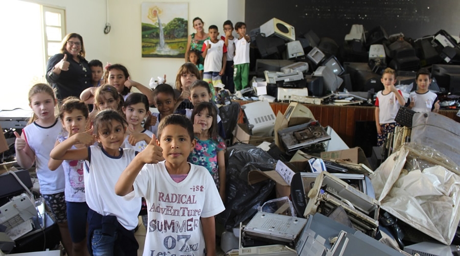 A arrecadação de lixo eletrônico como pilhas, celulares, computadores, TVs, fios entre outros, ajuda o município a pontuar na classificação do município verde e azul