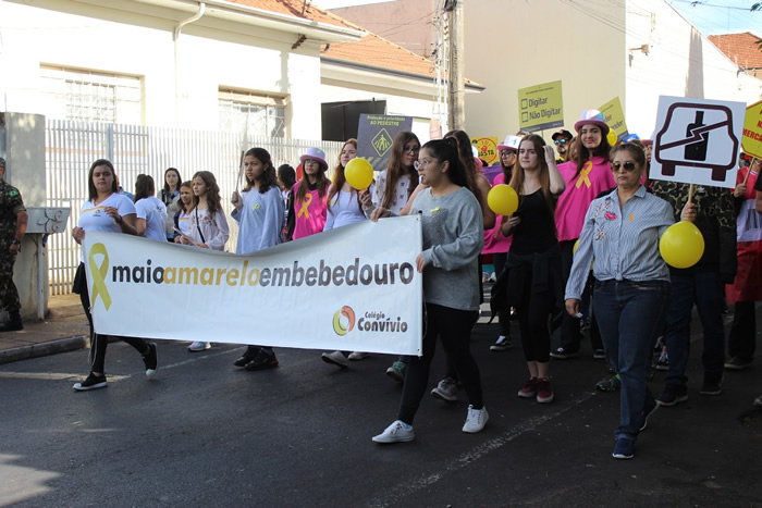 A Prefeitura de Bebedouro, por meio do Departamento Municipal de Trânsito e Transporte (DMTT) e parceiros como Concessionária de Rodovias TEBE e o Colégio Convívio realizaram mais uma edição da Caminhada Maio Amarelo com o tema “No trânsito, o sentido é a vida”. O evento foi realizado no sábado (25/05), com saída de frente à Prefeitura e passagem pelas ruas do comércio.