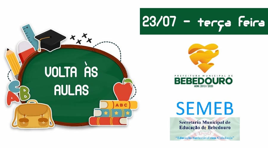 A Rede Municipal de Ensino de Bebedouro retoma na terça-feira, 23 de julho, as aulas do ano letivo de 2019, recebendo 7.000 alunos, distribuídos em 29 unidades escolares, incluindo os distritos de Botafogo e Turvínea e povoado de Andes. Cerca de 1.200 profissionais estão nas Unidades Escolares.