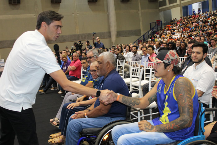 Na ocasião, o prefeito Fernando Galvão participou da palestra motivacional proferida pelo astro do vôlei brasileiro, Gilberto Amauri de Godoy Filho (Giba), com o tema ‘Trilhando o seu futuro’. Que também apadrinhou o projeto social intitulado ‘Mais Vida na Quadra’, em que pessoas com mais de 60 anos receberão aulas e treinamento para formar um time de vôlei adaptado acompanhado da reitora da instituição, Iná Faria Soares de Oliveira.