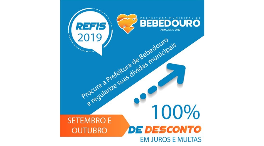 As mudanças no REFIS, foram aprovadas pela Câmara Municipal de Bebedouro, e sancionadas pelo prefeito, Fernando Galvão, no mês de agosto, estipulando que os munícipes possam resolver sua situação com facilidades, de acordo com a lei complementar nº 131 de 13 de agosto de 2019, referente ao Programa de Incentivo à Regularização Fiscal (REFIS).