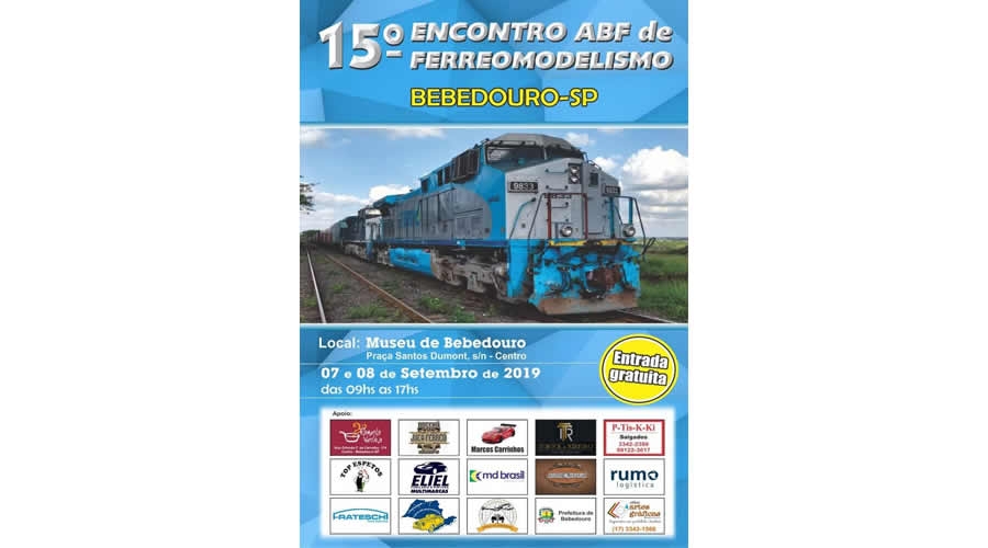 A Associação Bebedourense de Ferromodelismo (ABF) realizará gratuitamente a 15ª edição do Encontro de Ferromodelismo. O evento será realizado no sábado (07/09), e no domingo (08/09), das 9h às 17h, no Museu de Bebedouro.