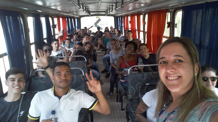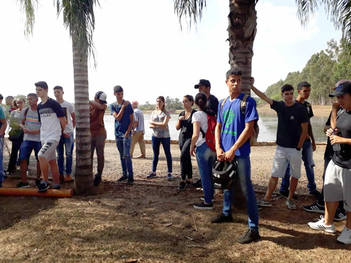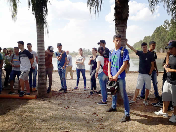 Os alunos estavam acompanhados pelos professores de Técnico em Meio Ambiente, Rosângela e Clayton, e pela professora Priscila de Aprendizagem Profissional em Comércio, Bens e Turismo.