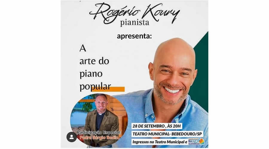 No sábado (28/09), o Teatro Municipal de Bebedouro "Maurício Alves de Oliveira Júnior", recebe a partir das 20h, "A arte do piano popular" com o pianista Rogério Koury.