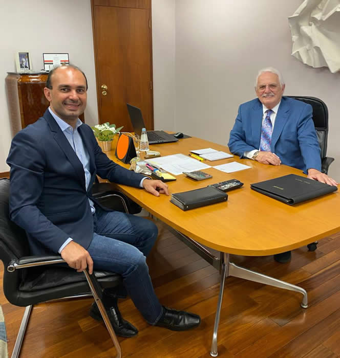 O prefeito Fernando Galvão esteve nesta quinta-feira (05/03), com o Diretor Regional do Senac São Paulo, Luiz Francisco de A. Salgado, na capital, para discutir sobre o andamento da obra da nova sede do Senac Bebedouro. Ainda nesta semana, na última terça-feira (03/03), Galvão esteve na obra. A visita contou com a presença do gerente do Senac do município, Wellington Miranda de Argolo; do presidente do Sindicato do Comércio, Manoel Vasco; do engenheiro responsável pelo Senac, Marcelo Gonzalez; e do assistente administrativo, Leonardo Montezino Moura.