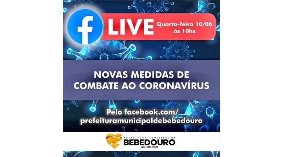 O prefeito Fernando Galvão, realizará nesta quarta-feira (10/06), o anúncio de novas medidas de combate ao Coronavírus. O anúncio será realizado às 10h, e exibido ao vivo na página da Prefeitura de Bebedouro, através da rede social Facebook.