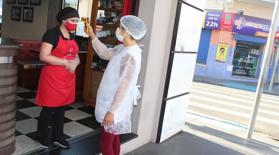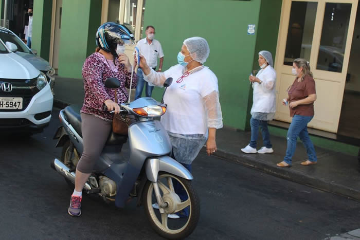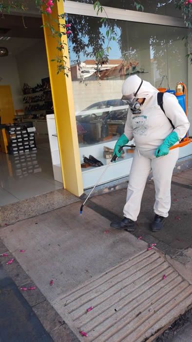 A higienização com cloro nas lojas da região central está sendo realizada pelos agentes do setor de Vetores e Zoonoses, utilizando bombas costais. Já as orientações sobre a doença, doação de máscaras e aferição de temperatura foram realizadas pelos funcionários da Vigilância Epidemiológica e Fundo Social.