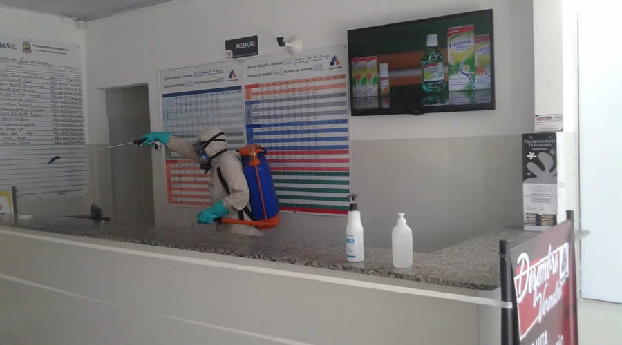 Os serviços também estão sendo executados em 60 pontos estratégicos de monitoramento da cidade, como na desinfecção das Estratégias de Saúde da Família (ESF), do município e distritos.