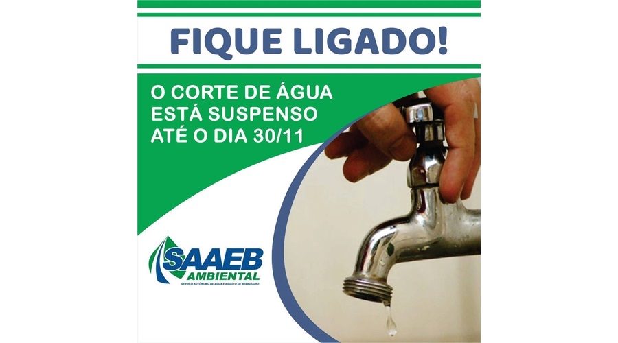 O SAAEB Ambiental considerando as adequações necessárias e preventivas ao atendimento ao público e a manutenção de serviço essencial à população, neste período de pandemia, prorroga a suspensão do corte do serviço de água por razão de inadimplemento até o dia 30/11/2020.