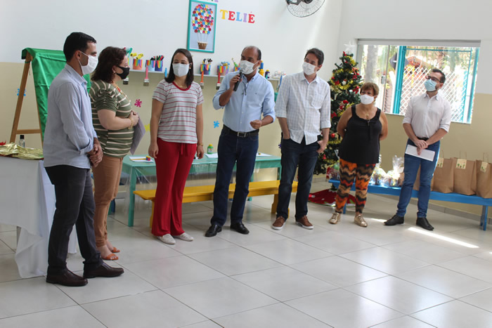 Também estiveram presentes no evento a primeira dama e presidente do Fundo Social de Solidariedade (FSS), Aline Galvão, a vice-prefeita eleita, Sebastiana Tavares e a vice-diretora da EMEI, Lizandra Boccardo Spido, e a coordenadora geral da Semeb, Angélica Lainetti Massaro.