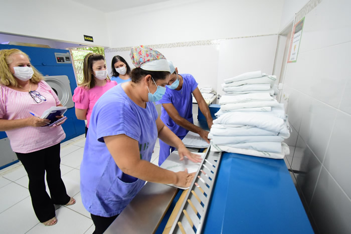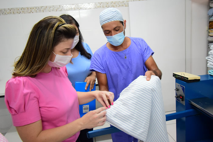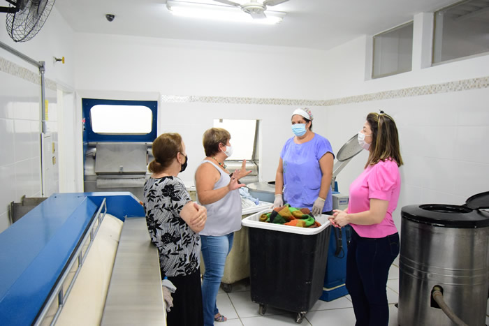 A presidente do Fundo Social de Solidariedade (FSS), Cristiane Seren, e a vice-prefeita, Sebastiana Tavares, visitaram a sala de costura e a lavanderia do Hospital Municipal Júlia Pinto Caldeira. A visita foi realizada nesta segunda-feira (18).